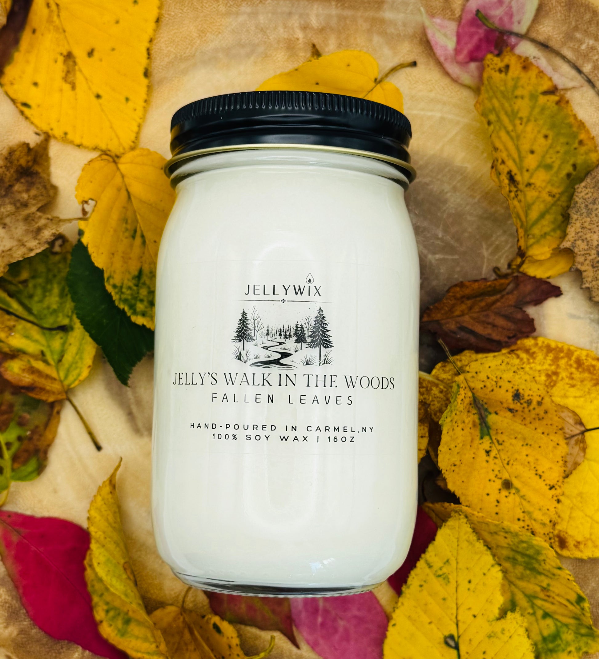 Experience the essence of autumn with JELLY'S WALK IN THE WOODS. Warm cinnamon, bright citrus, and delicate chrysanthemum open the scent, while juicy apple and vibrant berries mingle with fresh green leaves at its heart. Rich pecan and cedar base notes deepen the natural woodland feel, complemented by an earthy blend of cinnamon leaf, patchouli, cedarwood, vetiver, and sandalwood. This inviting and sophisticated fragrance envelops you in the playful spirit of a crisp fall walk among colorful leaves.